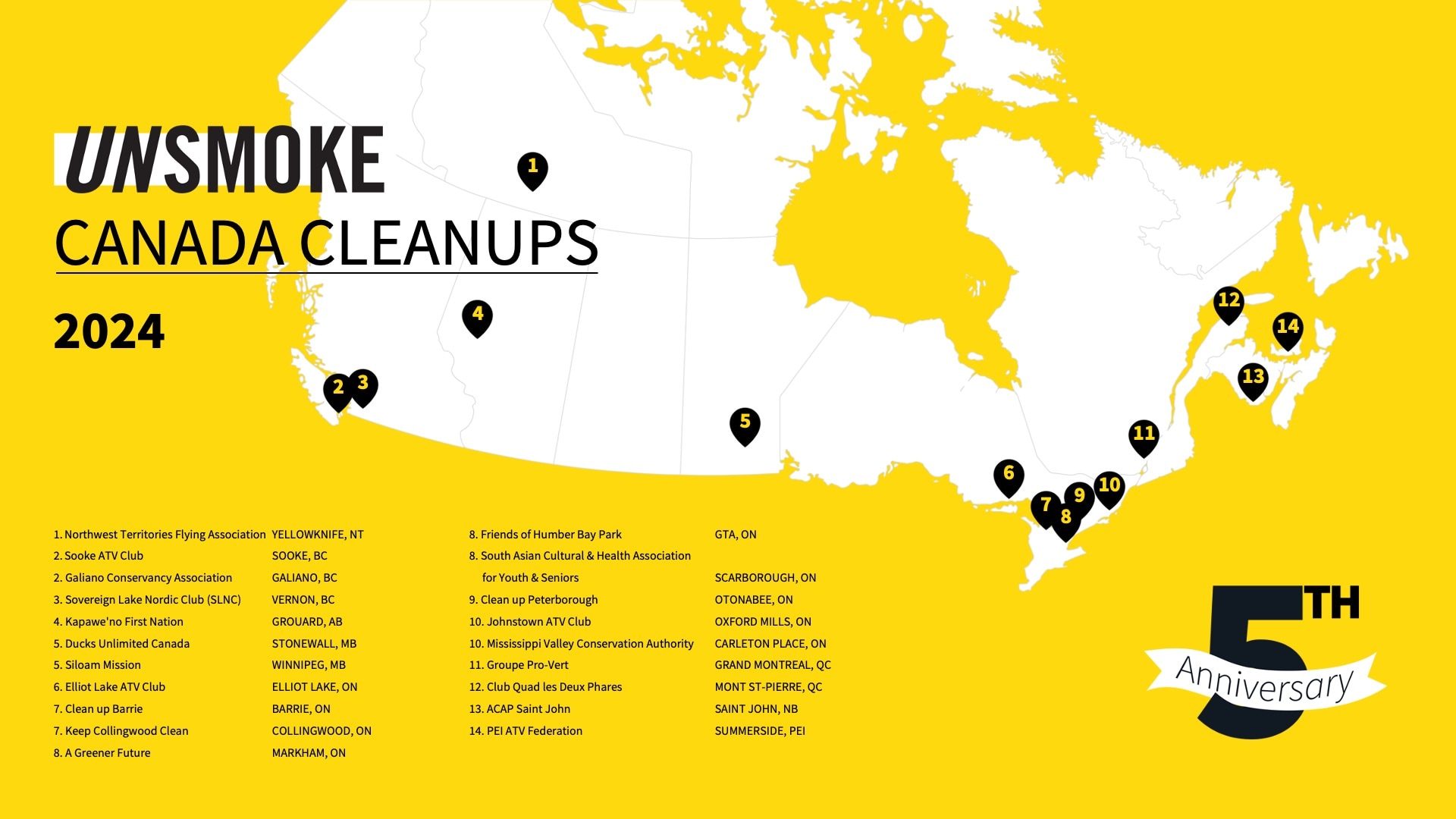5 years of Unsmoke Canada Cleanups – By the Numbers